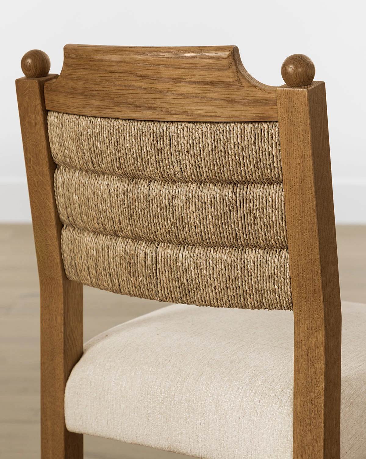 Vintage-inspired and crafted with a blend of mixed materials, our Alberta Dining Chair balances both traditional and modern aesthetics. The honey oak finished frame and textured back woven with seagrass bring a natural feel to the chair’s classic structure. Upholstered in soft and resilient cotton-linen performance blend, the seat offers depth for a generous sit that invites you settle in. Styled as a set of wood dining chairs, they bring a sophisticated yet approachable element to your home.