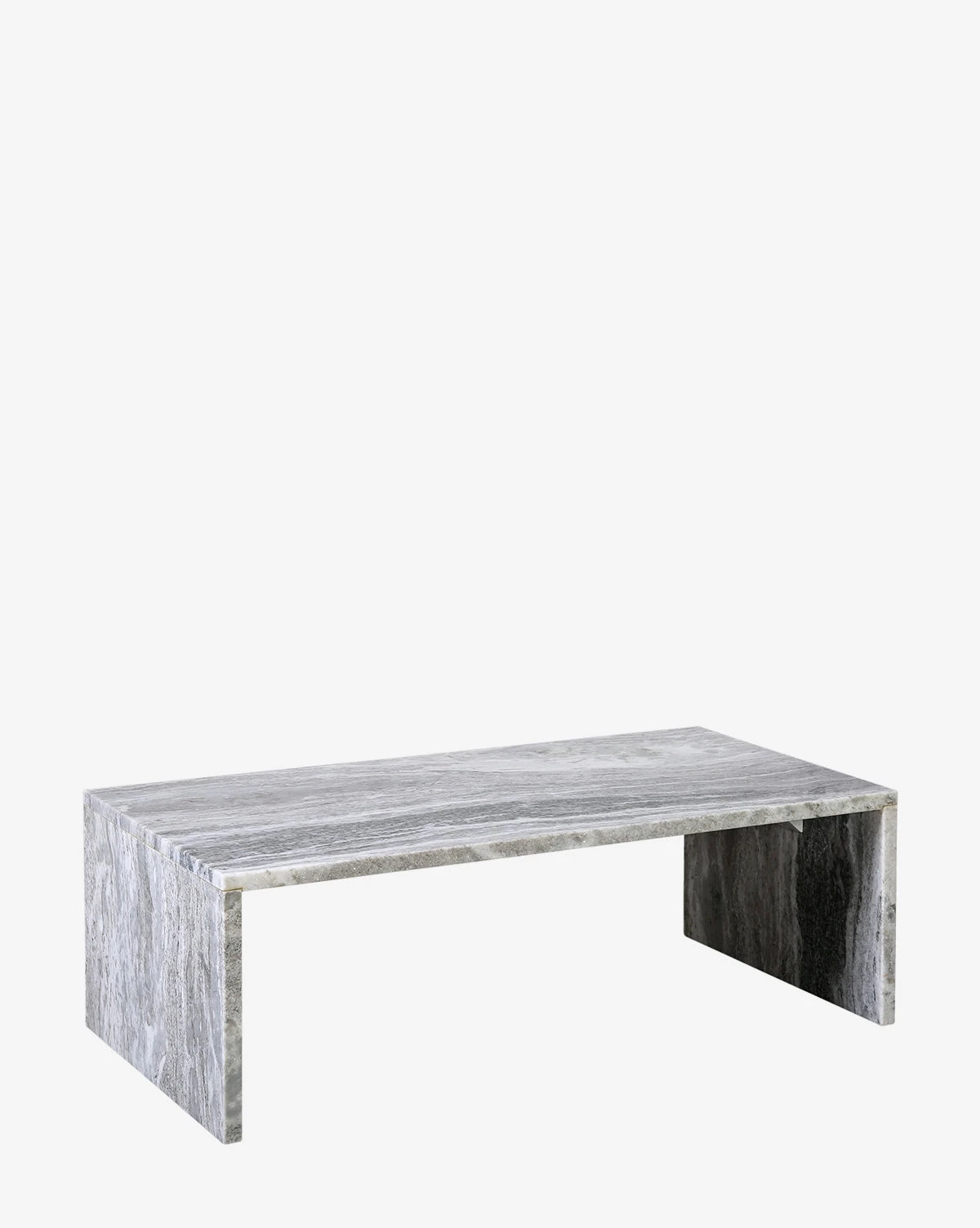 The Boyden Coffee Table is crafted entirely from light gray natural marble, giving it a beautiful organic feel. With a sleek modern shape, the coffee table makes a subtly elegant statement wherever it is placed.