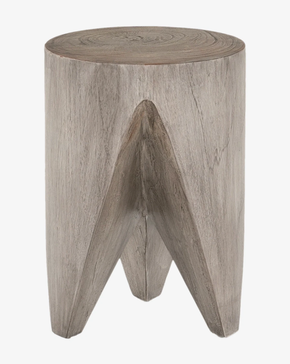 The Brena Outdoor End Table has an organic feel that celebrates its sculptural form. With a three-leg design and three available finishes, every table exaggerates its wood grain and texture for a touch of organic design in a modern take on natural material.