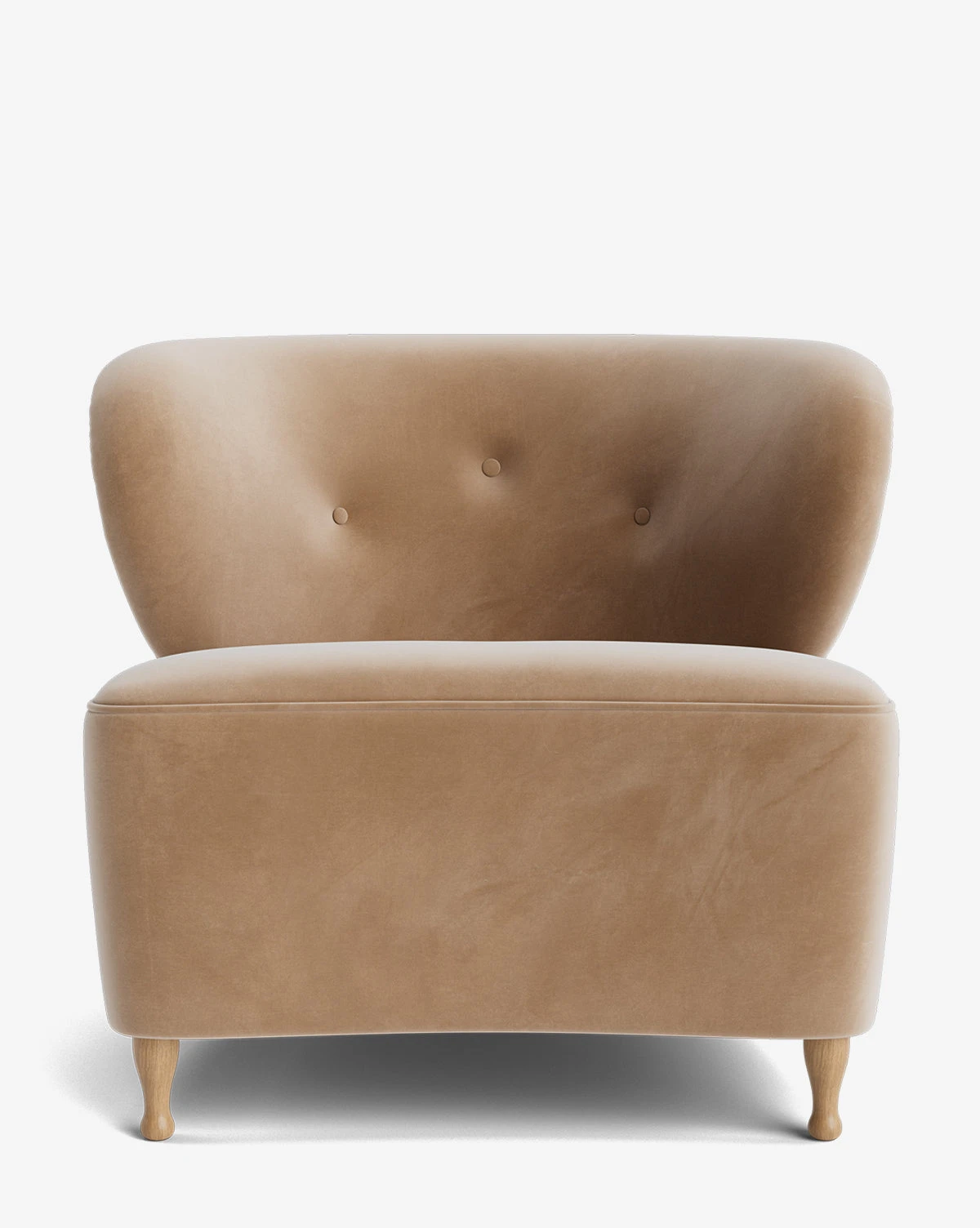 Our Carmella Slipper Chair reimagines a traditional design with subtly modern details. Crafted to bring a luxurious feel to your space, its seat is comfortable and inviting, while its tufted, rounded back feels sophisticated. Featuring red oak legs and your choice of designer upholstery, the slipper chair is a grounding presence in any room.