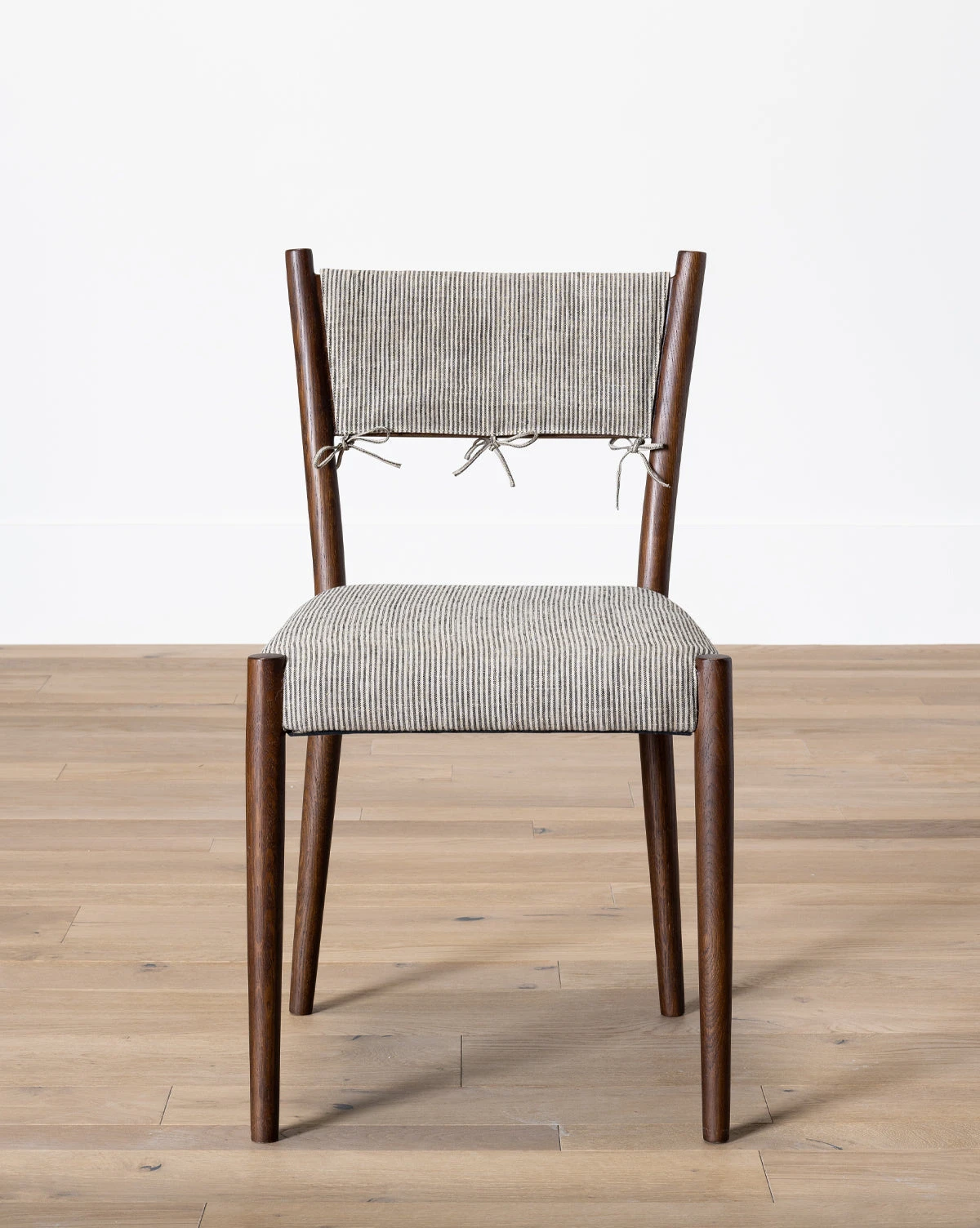 Artfully designed in a deep, rich brown, the Crawford Chair has delicate tie details that give this dining piece a feminine touch. Complete with an upholstered seat, the Crawford Dining Chair has a timeless appeal that brings grace to your living spaces.