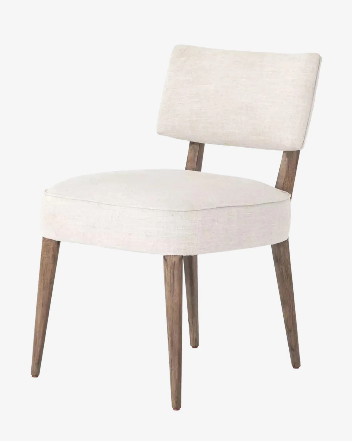 With a timeless mix of materials, the Cyrene Dining Chair creates a subtly elevated and inviting feel around your dining table. Its wood legs hold cushions upholstered in an ivory performance fabric.