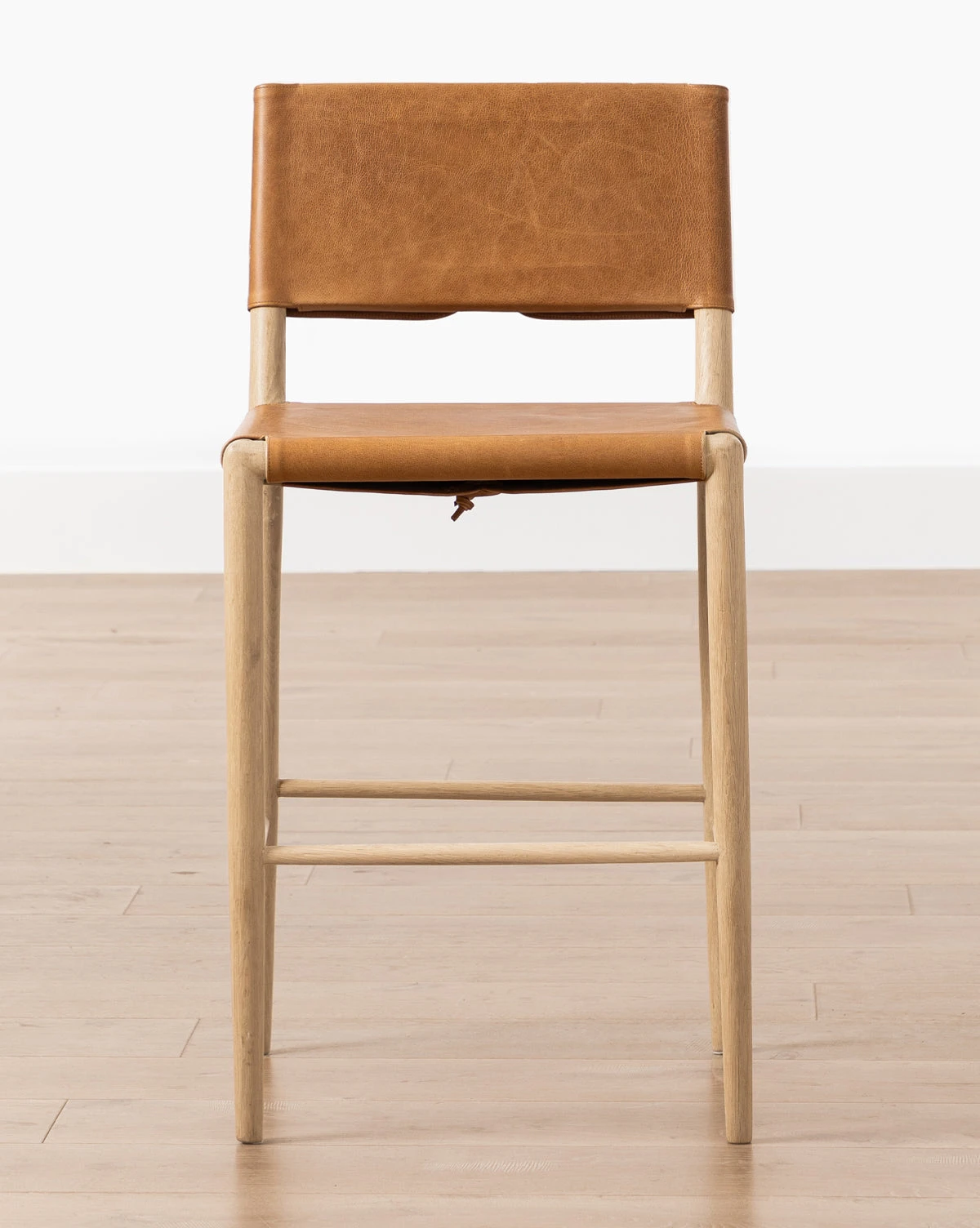 It’s all about the details with our Danson Counter Stool! From the light neutral wood base, to the warm leather seat and back, this stool highlights minimalist design while showing off its unique back detail with faux ties and rounded straps.