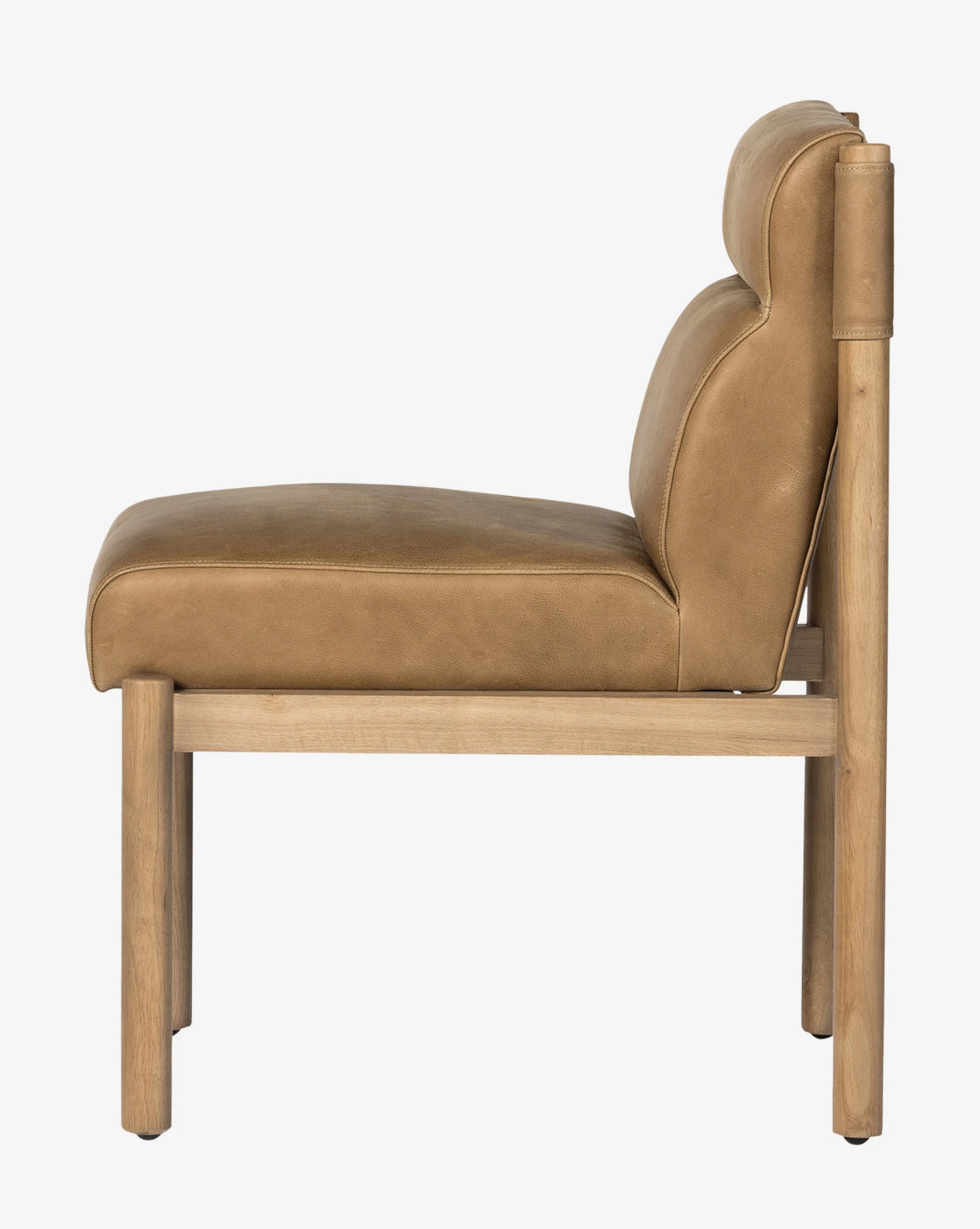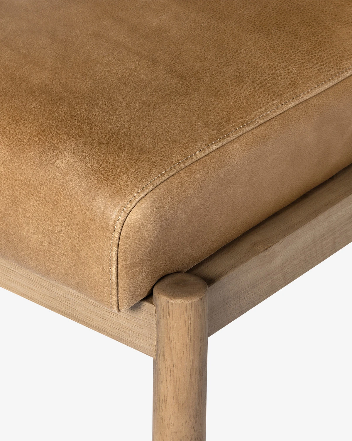 The Darby Chair’s modern design holds a seat upholstered in either top grain leather or oatmeal performance fabric. The full cushions provide a sophisticated sense of comfort, while the wood frame brings warmth to your styling.