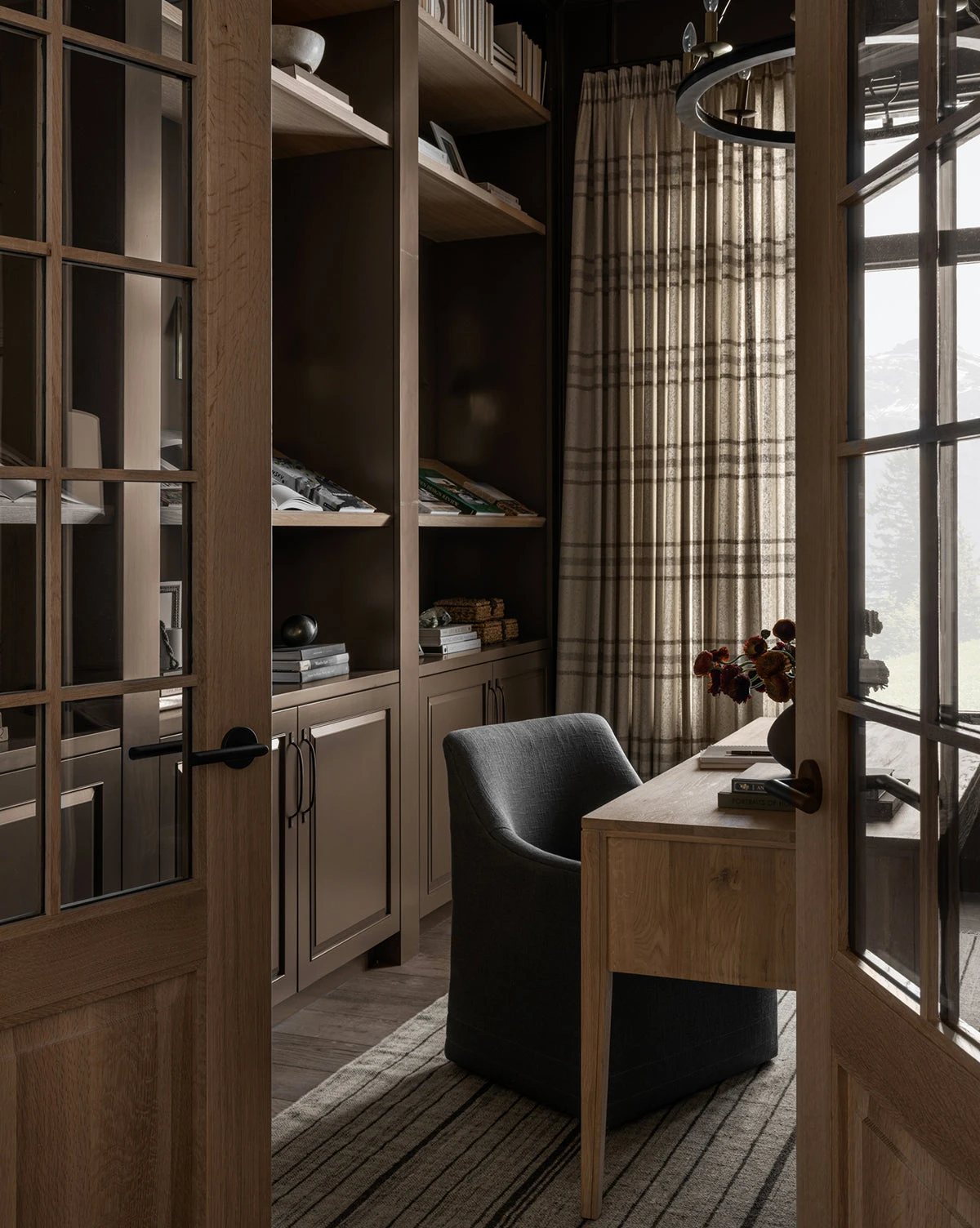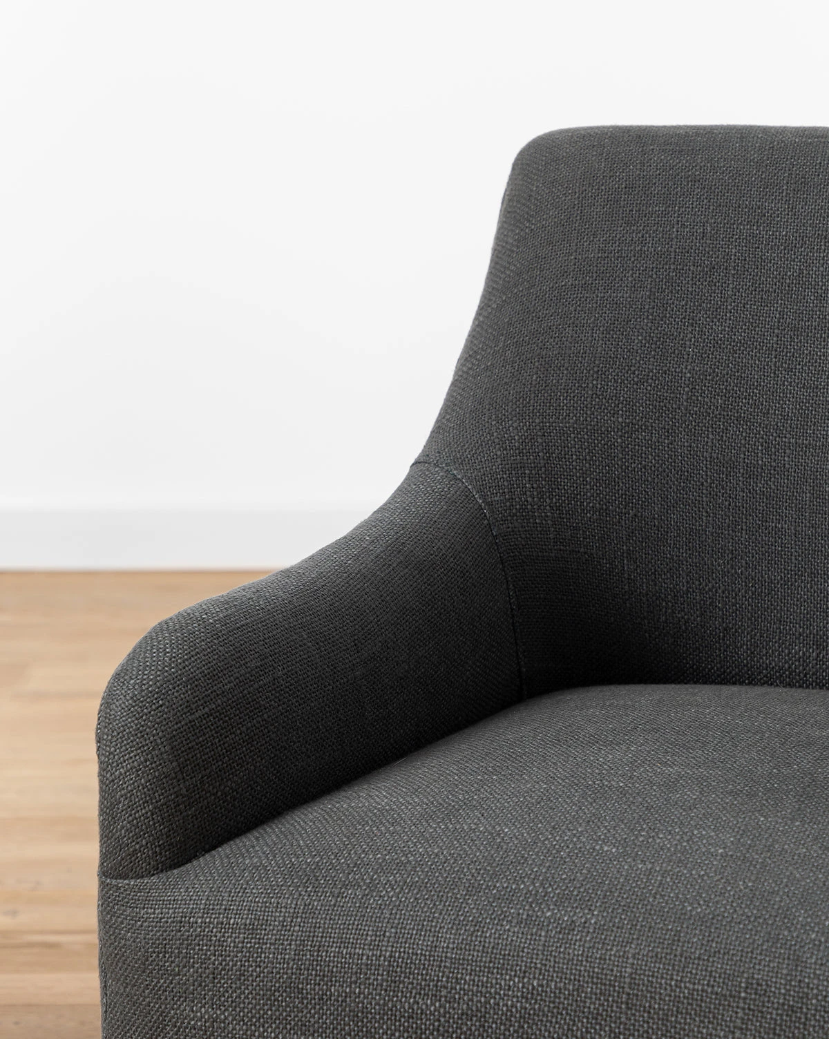 Dramatic and poised, the rolling Elton Office Chair brings elegance to the office. With a linen blend upholstery in an off-white or ink colorway, its back fluidly extends into its armrests using sophisticated lines, creating an elongated look and elegant feel.