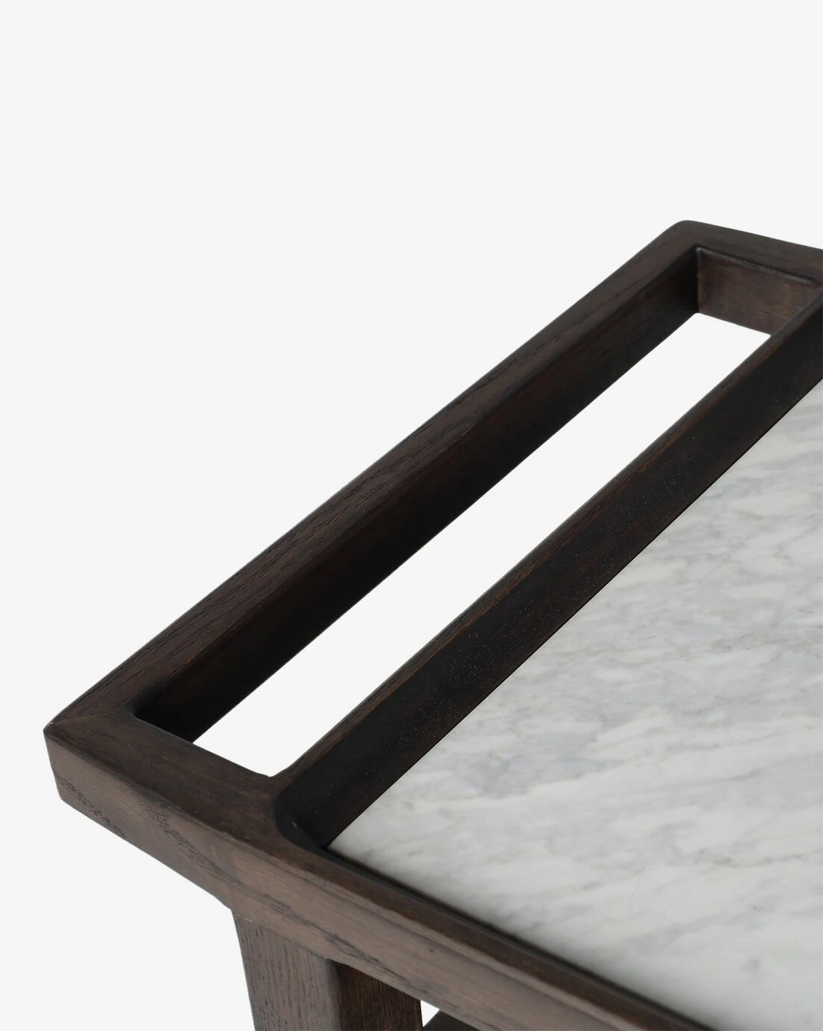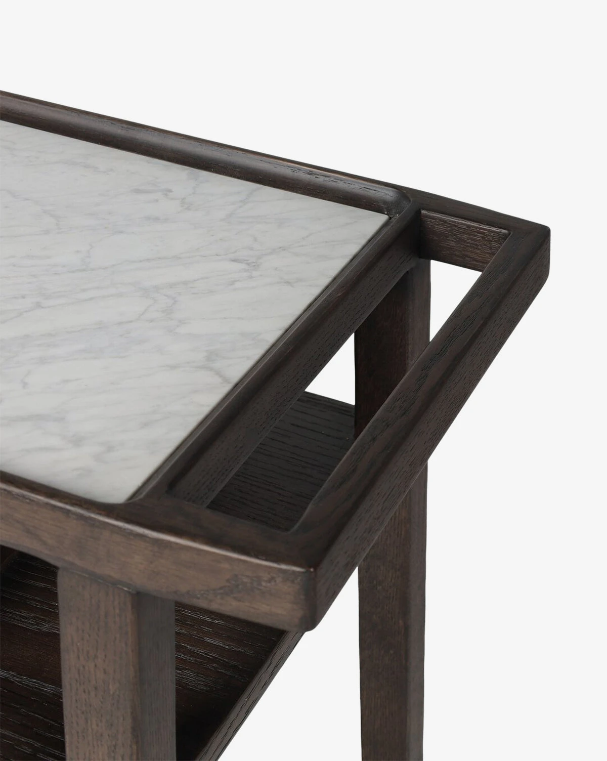 With a marble top and brown oak frame, the Galen Bar Cart boasts a sleek mixed material look that brings a touch of sophistication to home styling. Thoughtfully designed, the rolling bar cart features a center drawer and open shelving for convenient storage and handles at both ends make it easy to move. Blending function and flair, it elevates your entertainment space and meets your hosting needs.