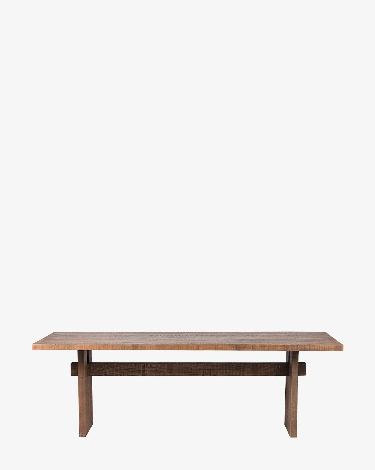Crafted from solid reclaimed elm wood, the Glenna Dining Table is refined and organic. Its farmhouse style structure features plank legs and a beam stretcher for extra intrigue, giving the grand table character and an inviting feel.