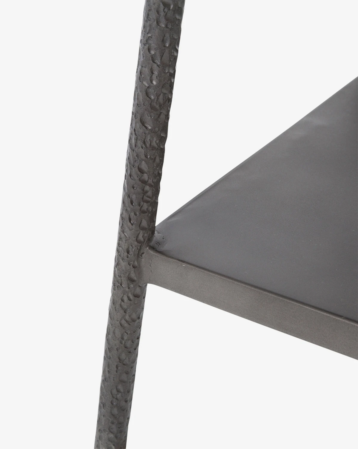 A simple silhouette gets an update with contrasting iron and marble materials. Our Heidi Side Table features a hammered gunmetal base with a hand forged feel and sleek white marble top.