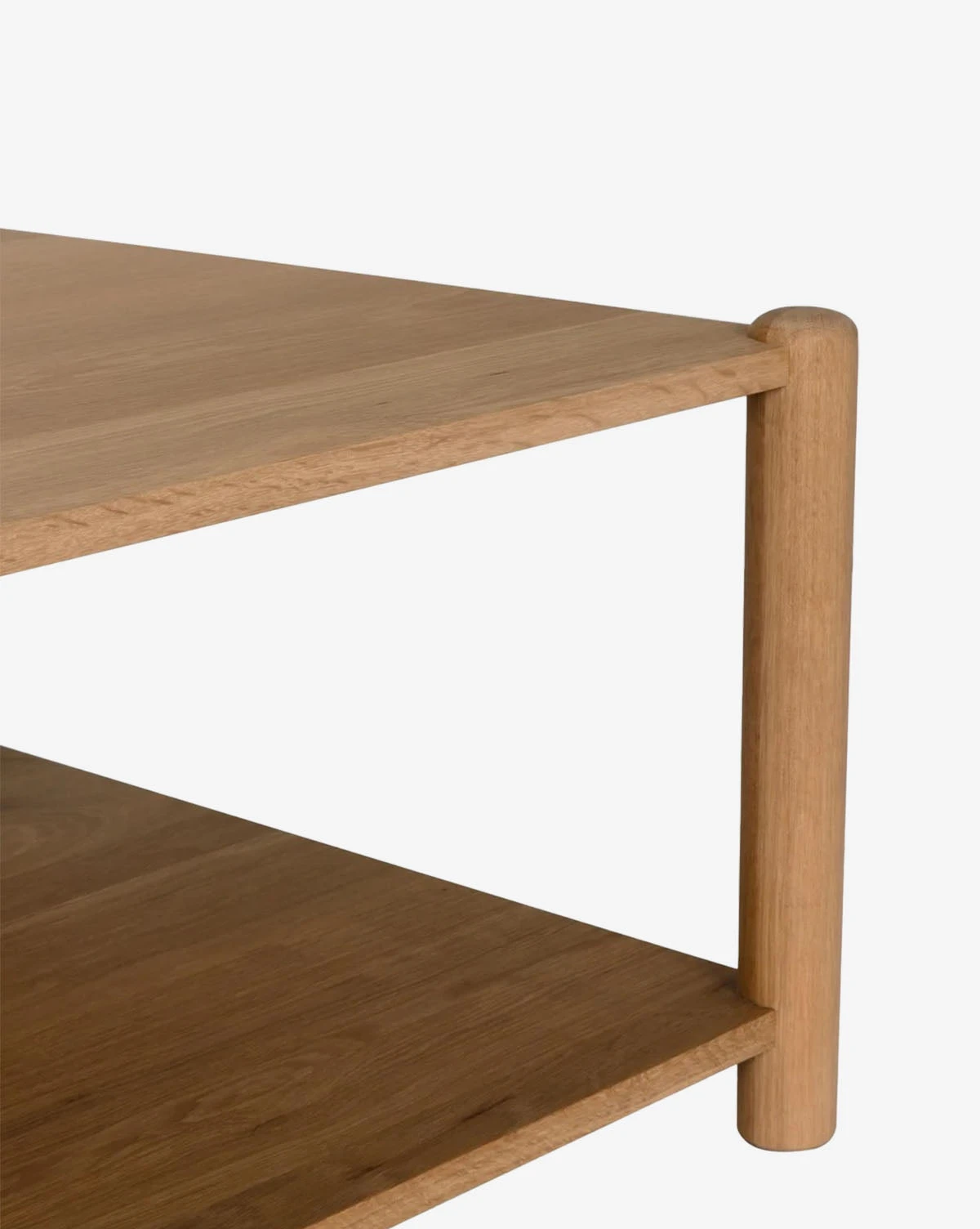 Crafted entirely from white oak in a fawn finish, the Hetty Coffee Table boasts a streamlined, contemporary design. Its open form adds subtle shape and dimension to your living room while the natural woodgrain of the coffee table makes for the perfect mix of organic and modern.