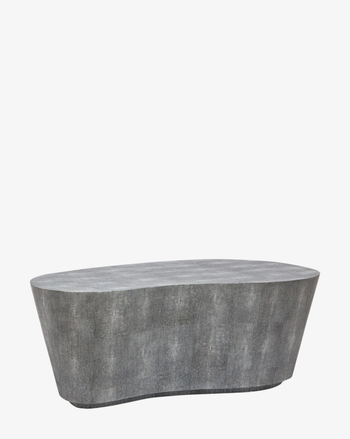 The Hughes Coffee Table brings a unique balance of weighty presence and elegant detail to your space. Its sculptural form is covered in hand-stamped faux shagreen with a sand finish, bringing its abstract and textural look to living rooms.