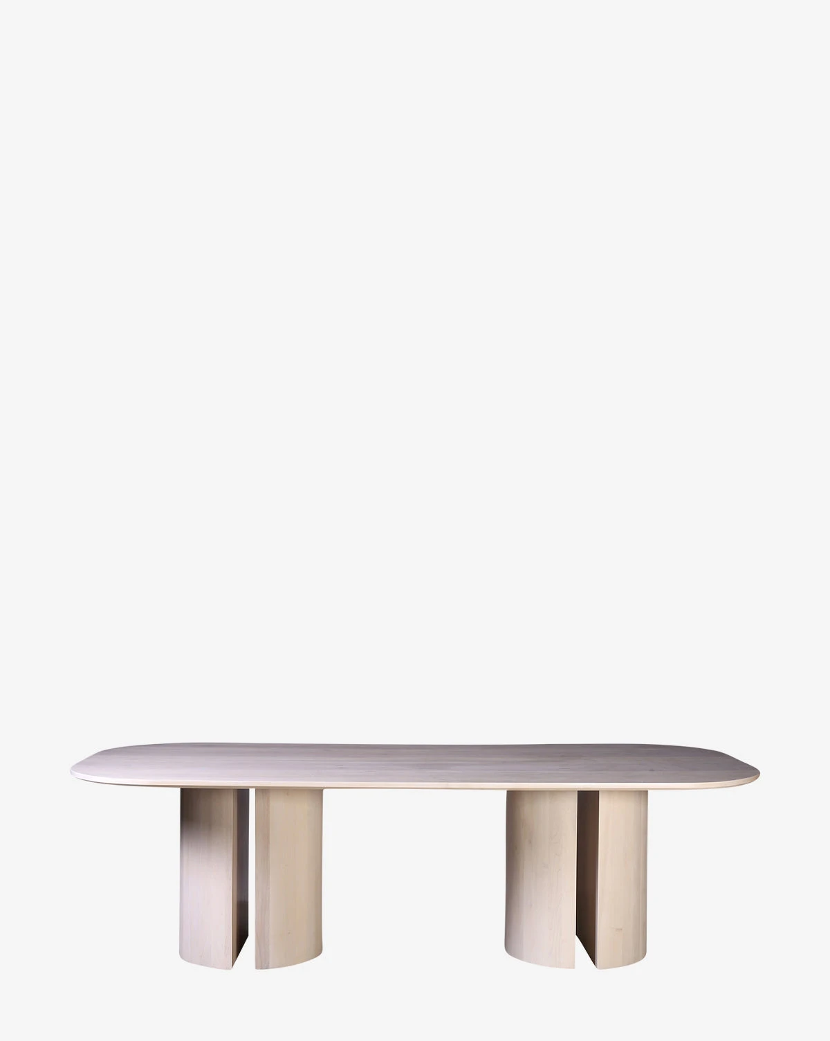 A perfect mix of elegance and simplicity, the Kamala Dining Table makes a beautiful addition to your dining space. Made from maple wood in a white finish and featuring sculptural bases, the table adds subtle dimension to your home.