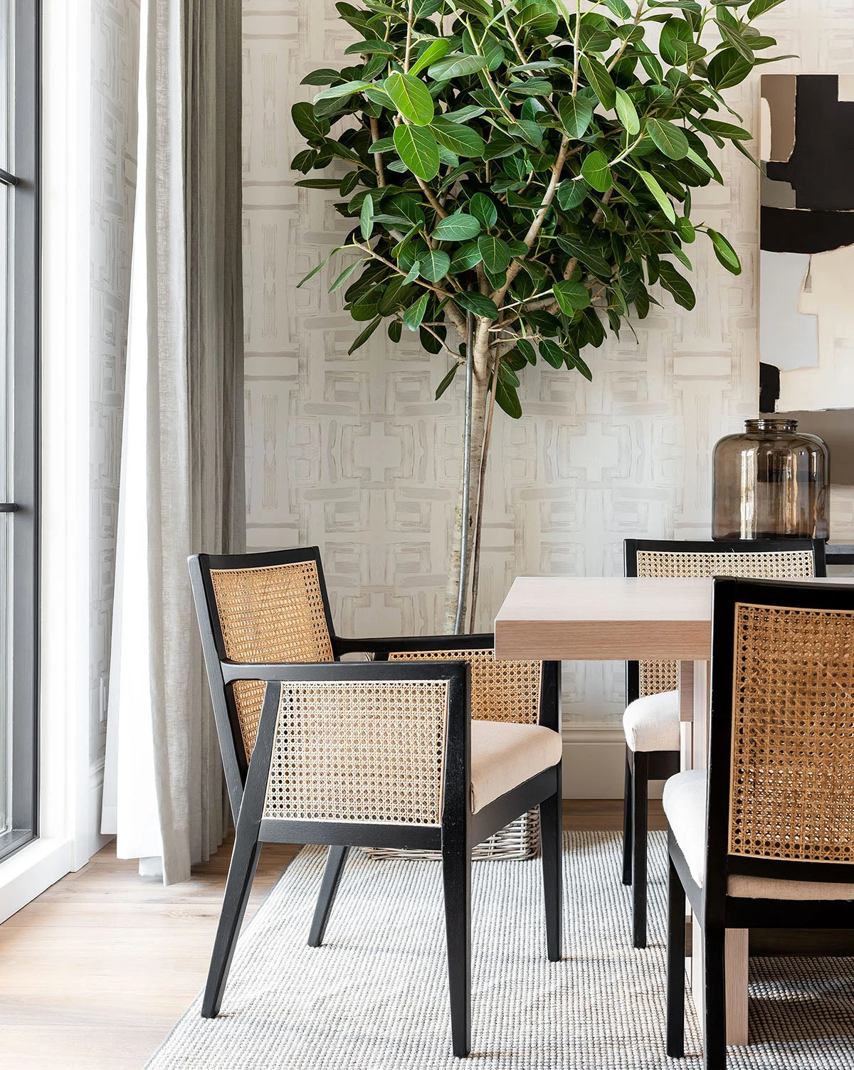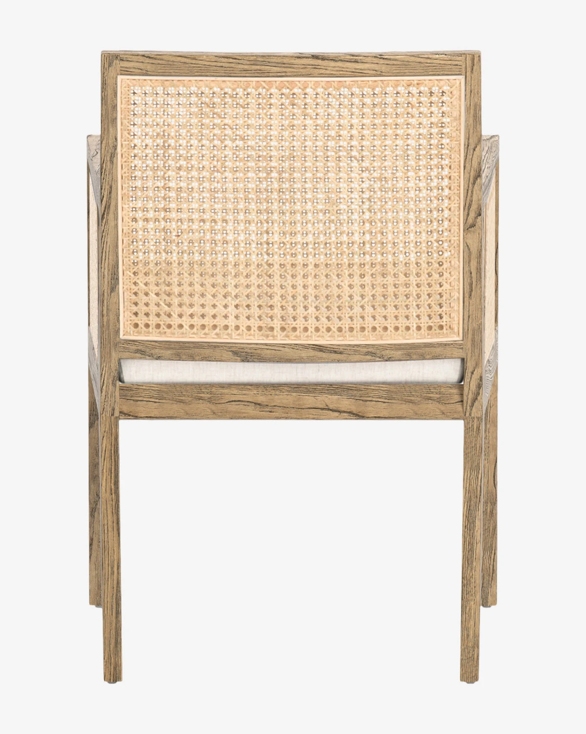 Drawing on a mix of materials, the Landon Arm Chair breathes new life to traditional seating. A nettlewood frame with inlay of natural cane and a neutral linen-blend cushion, create both dimension and textural contrast.