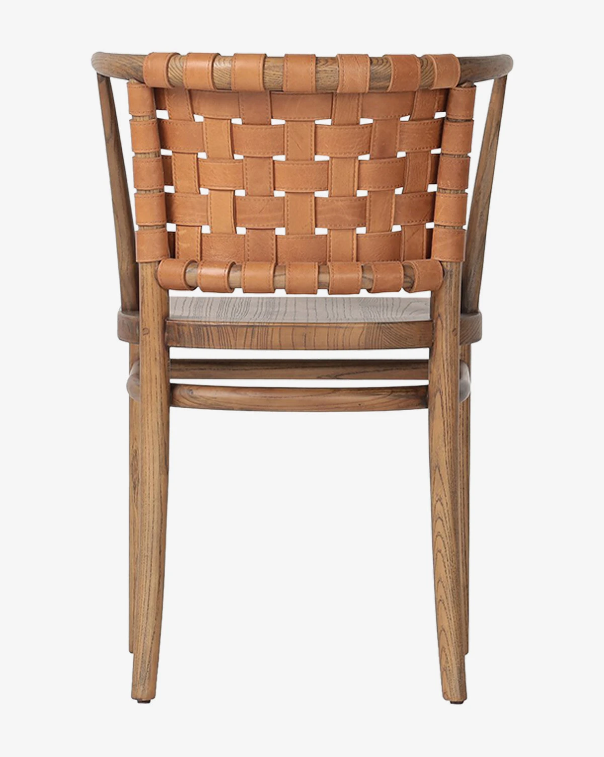 Featuring an inviting woven leather back and rich toasted nettle wood frame, the Lennon Dining Chair reimagines the classic bistro-style dining chair. Its compact form fits effortlessly into smaller seating areas, and its warm sophistication elevates any dining space.Â