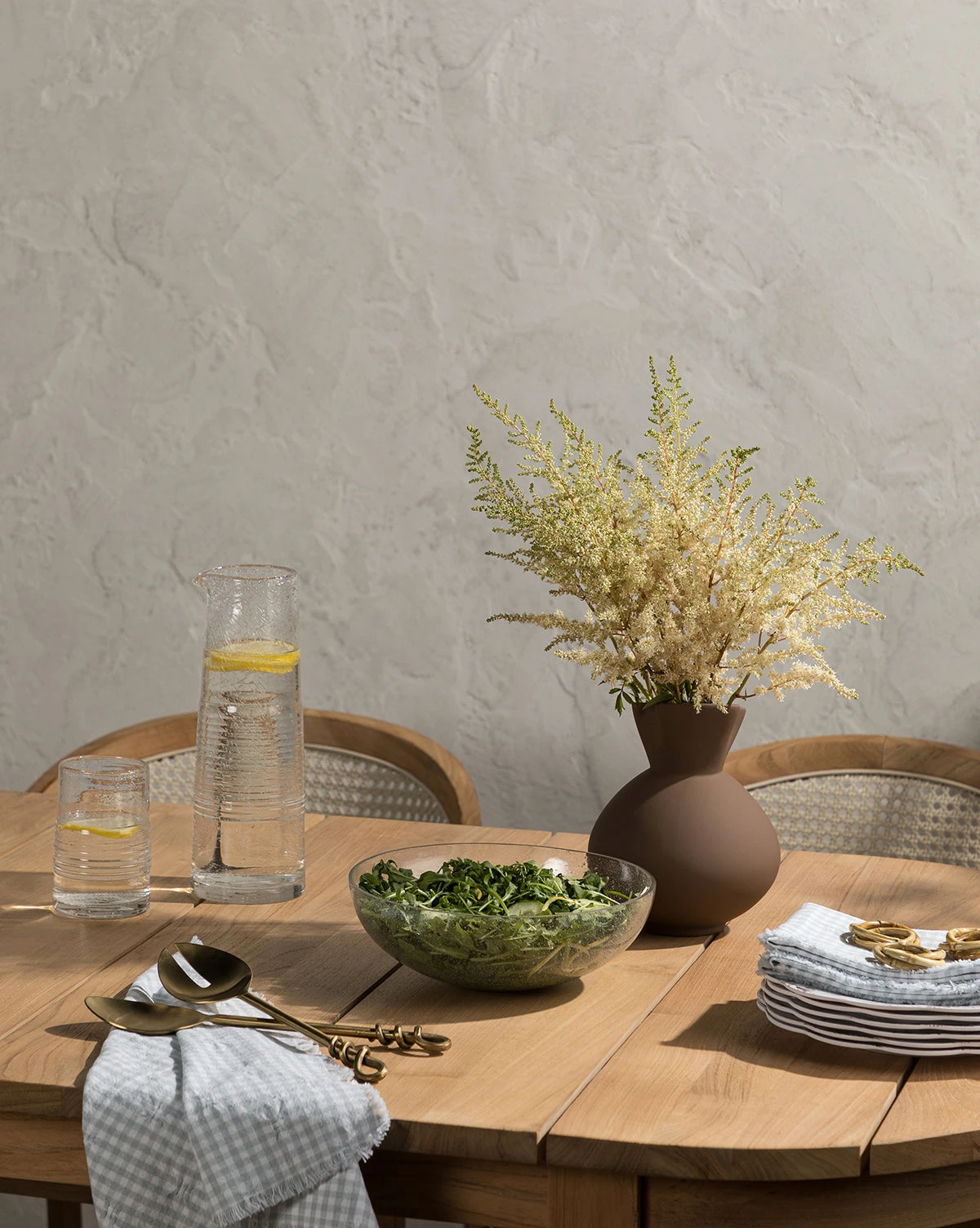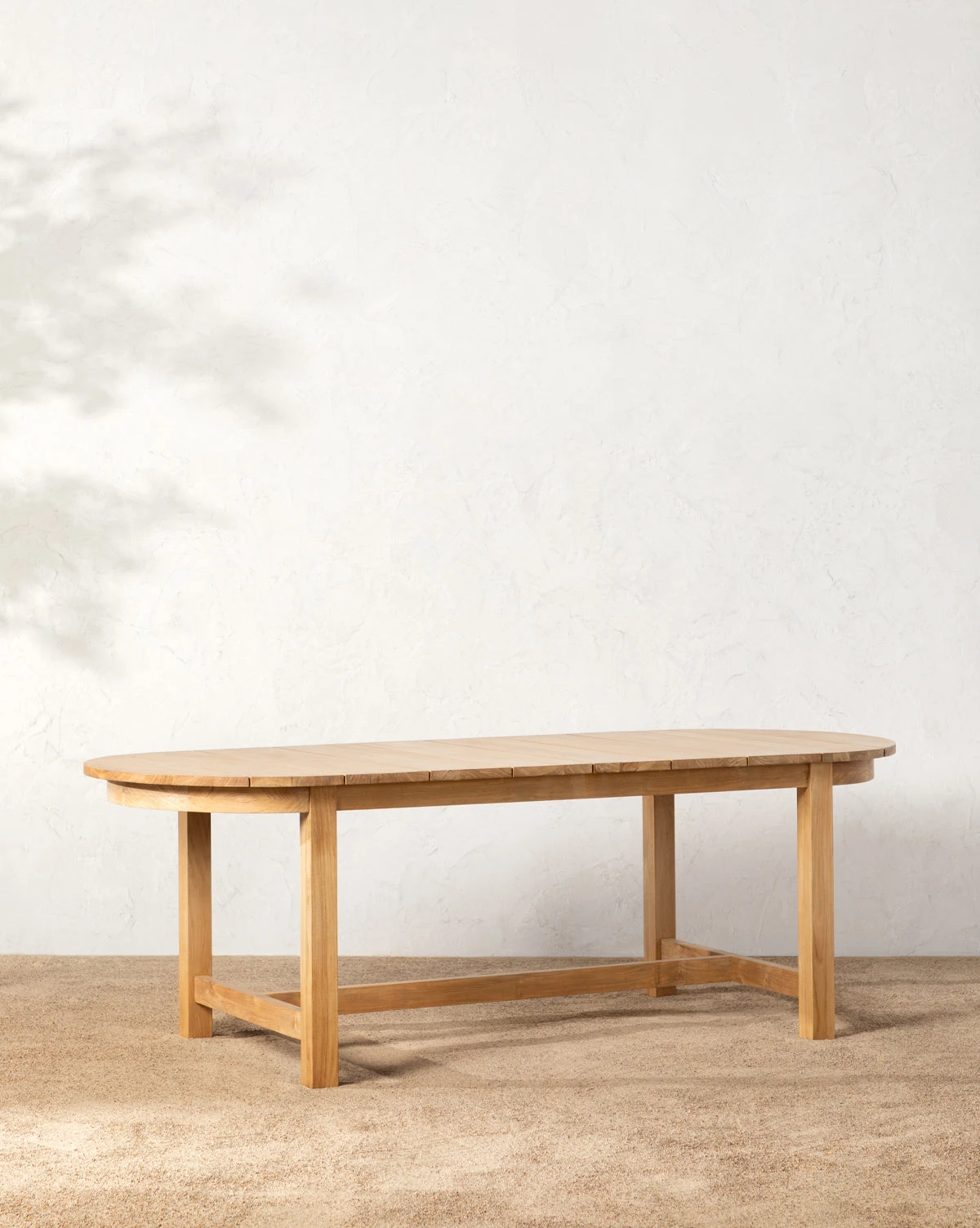 Designed with high-quality teak wood, our Linwood Teak Outdoor Table is an all-weather dining piece created to be an enduring organic and beautiful addition to your outdoor decor. With an oval tabletop of sun-bleached teak panels, this table has an inviting, coastal feel.