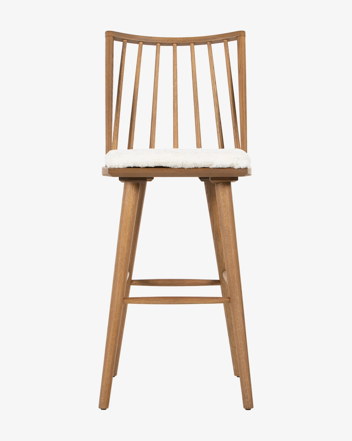 The Madison Stool honors its traditional Windsor roots, but with a contemporary update. Carefully wire-brushed to accentuate the oak’s cathedral grain, its various finishes offer both natural and dimensional styles. Added cushions of either leather or boucle give comfort, while also uplifting the overall aesthetic of the piece.