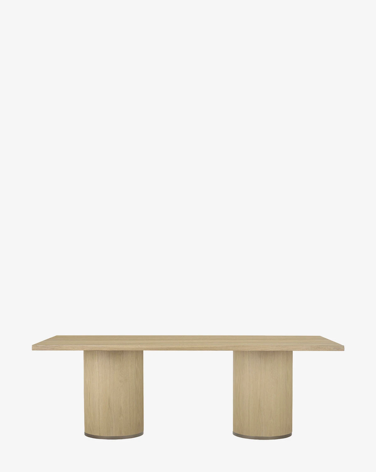 A stunning modern oak dining table, the Mellette Dining Table features organic detail and a light, neutral tone. The dining table suits your needs for gathering while bringing a streamlined, shapely feel to your home. Â