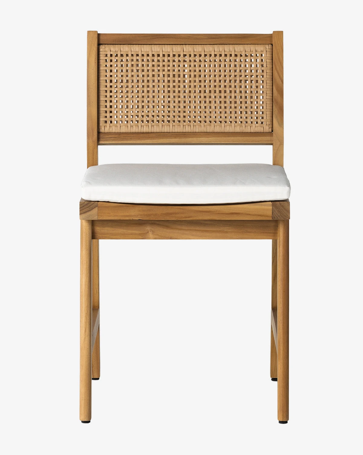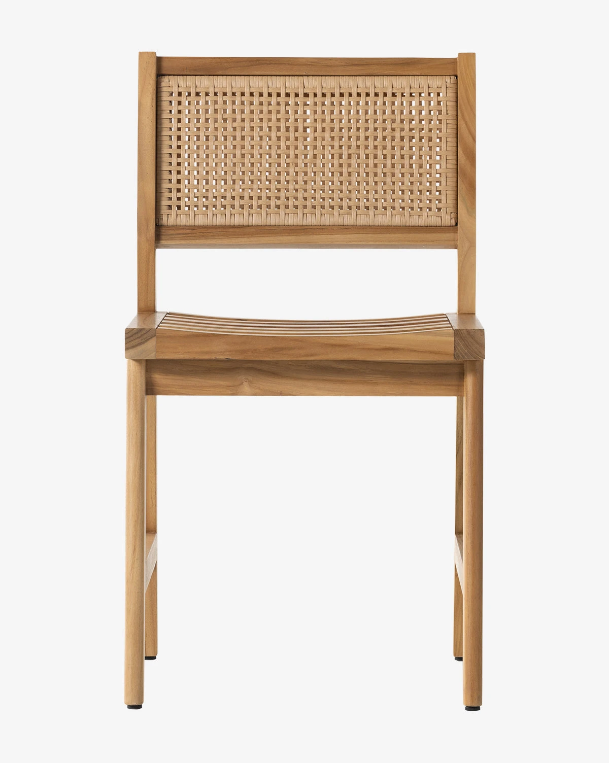 With a rattan-inspired woven panel and a slatted seat, the Rey Outdoor Dining Chair is an updated take on the classic patio chair. Crafted from high-quality teak wood, its details elevate your dining set while its materials bring enduring beauty to your outdoor spaces.