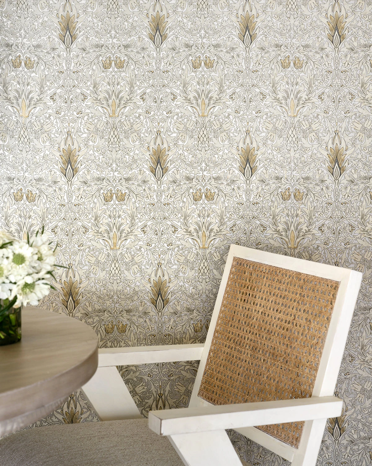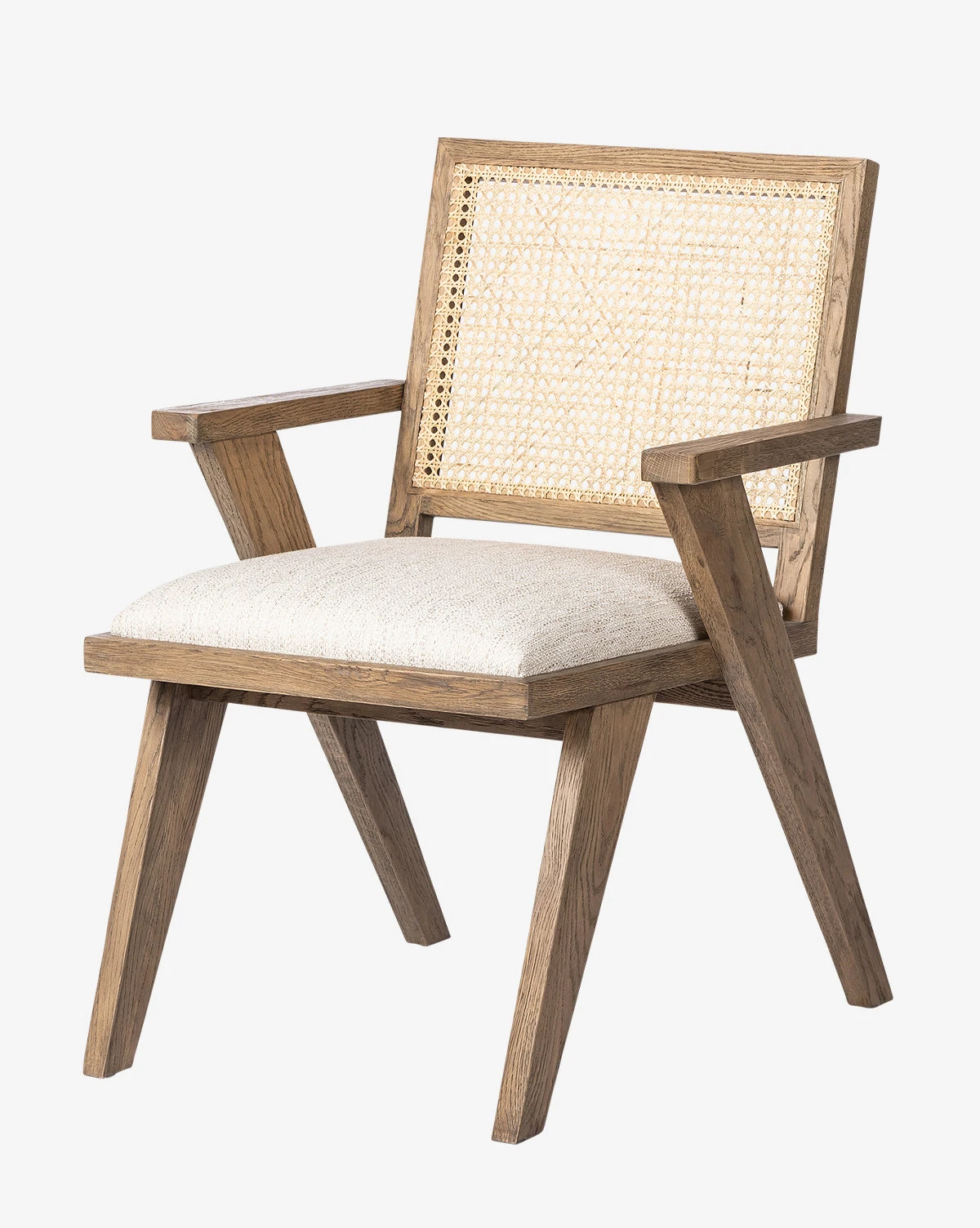 Inspired by french architecture, the Rowena Chair does monochromatic in a whole new way. With plenty of texture, this chair makes a statement with its solid oak framing and woven cane back, fitted with an upholstered cushion for comfort this chair instantly elevates your dining space.
