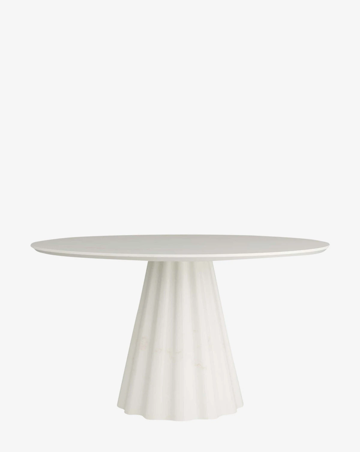 With an elevated mix of materials, the Samwell Dining Table features a white marble tabletop. Supported by a pleated wood base in a white gesso finish, this dining table brings a modern sculptural feel to your space.