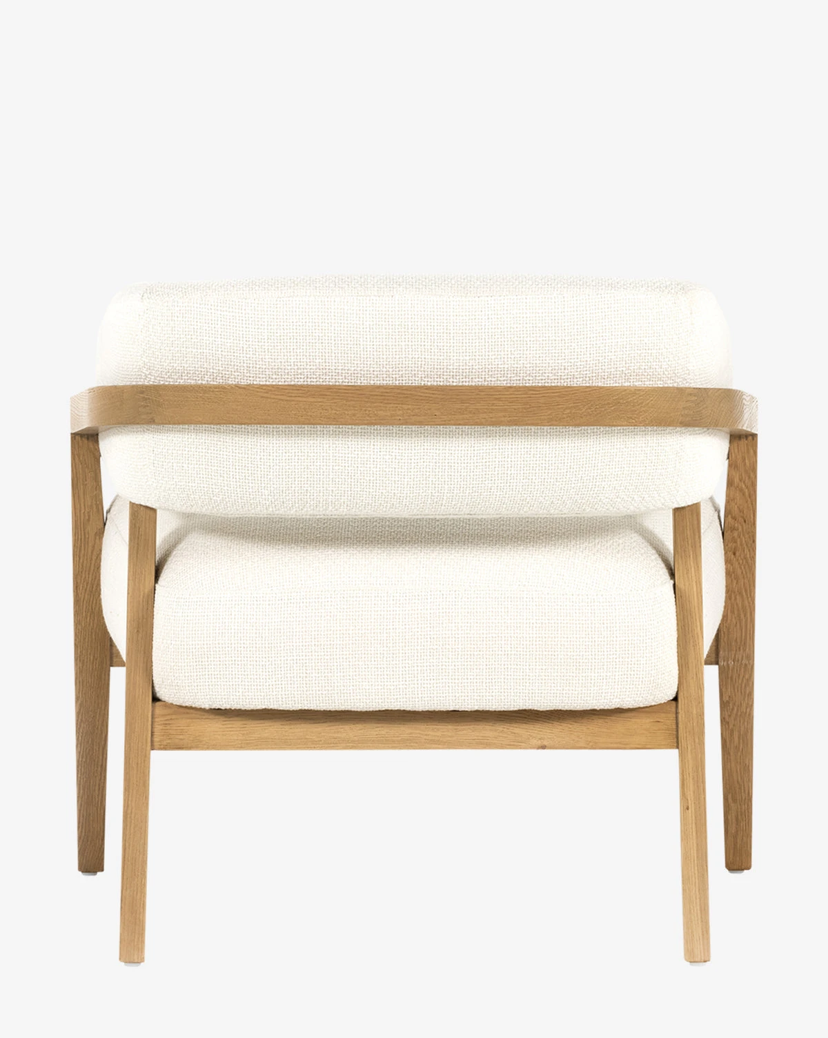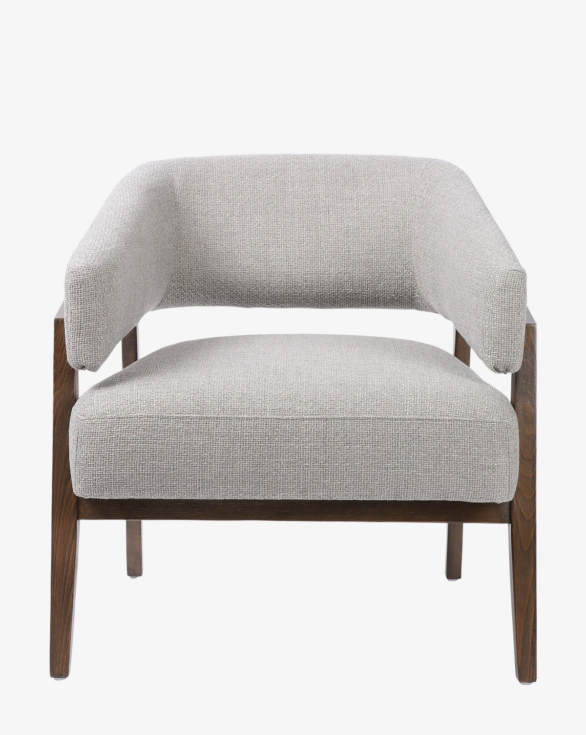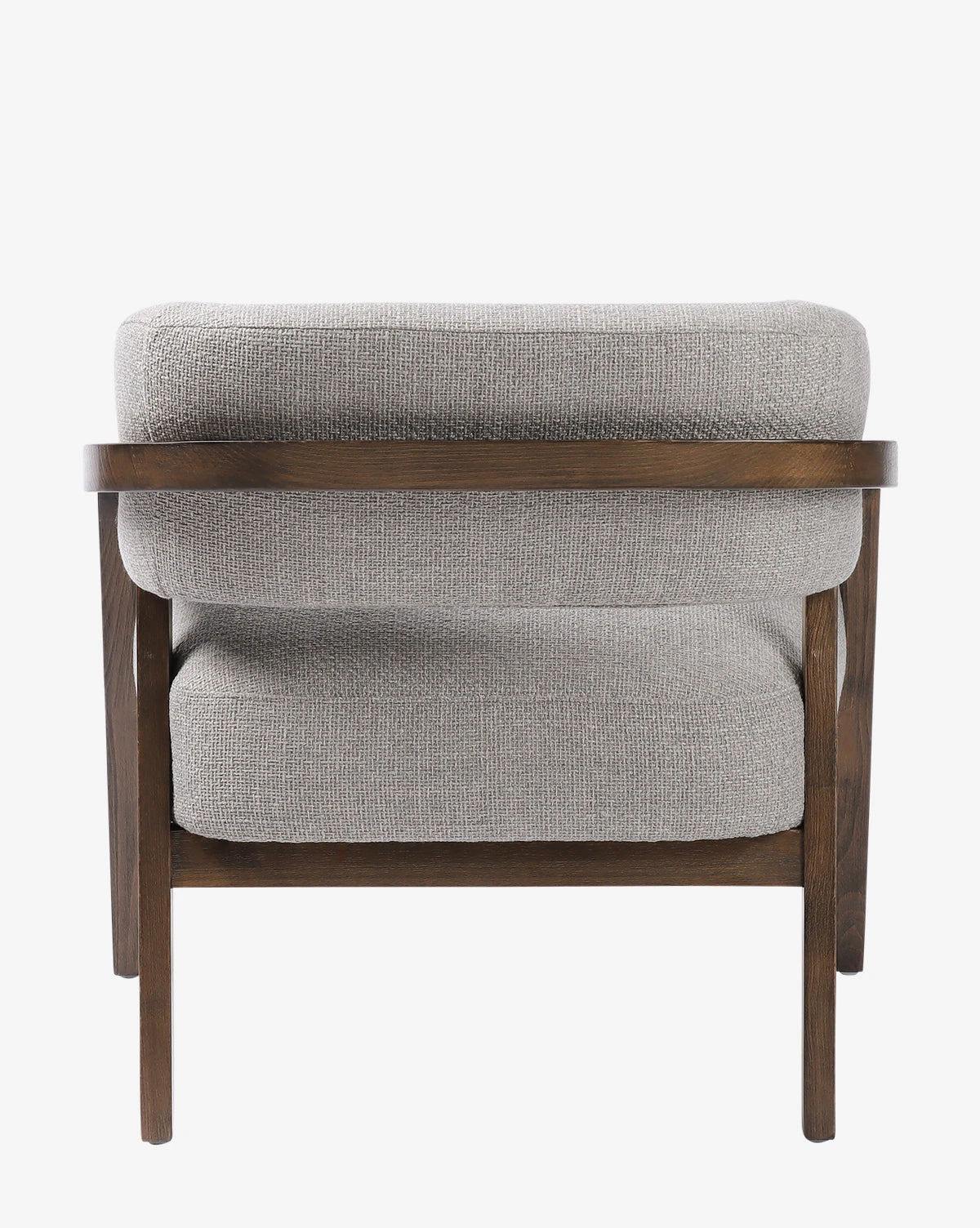 Refined yet inviting, the Stanley Chair features a wrapped frame with your choice of high-quality fabric. Its wood frame is straightforward and dramatic, and the elevated backrest brings an element of contemporary design to this lounge chair.
