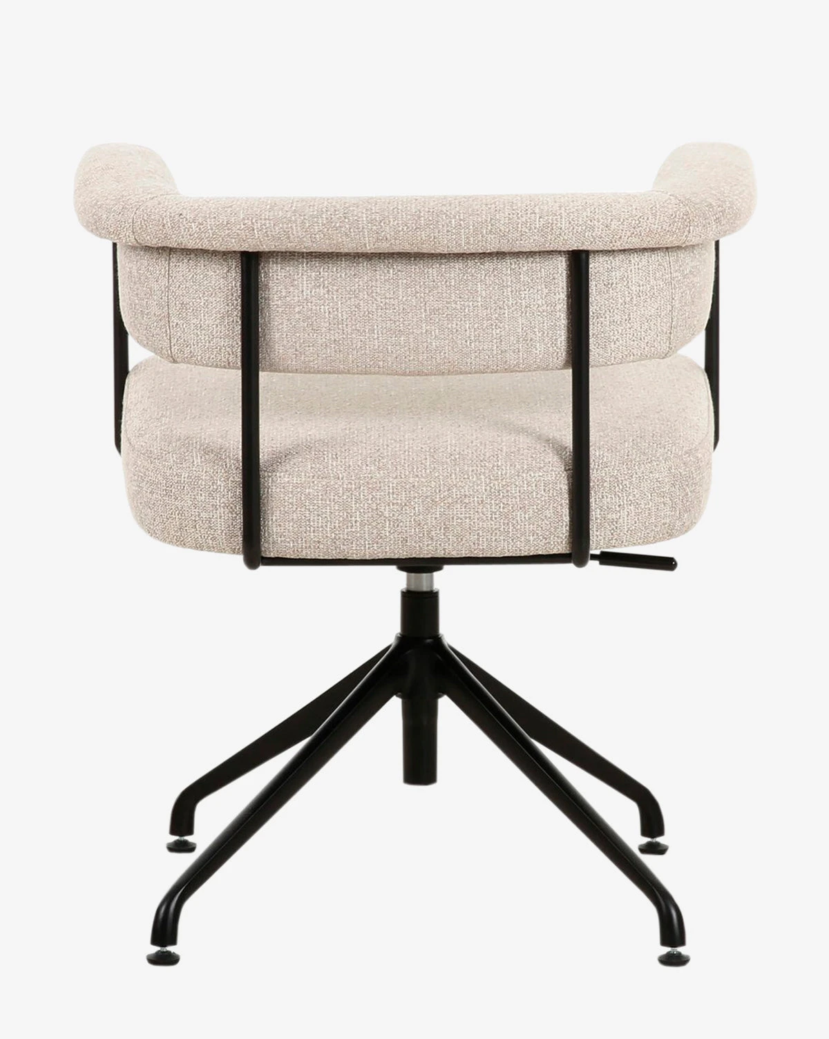 With soft and neutral upholstered seating and backing, the Viggo Desk Chair is elevated and inviting. Its contemporary design makes it a unique presence in your space, while wheels and adjustability add everyday function.