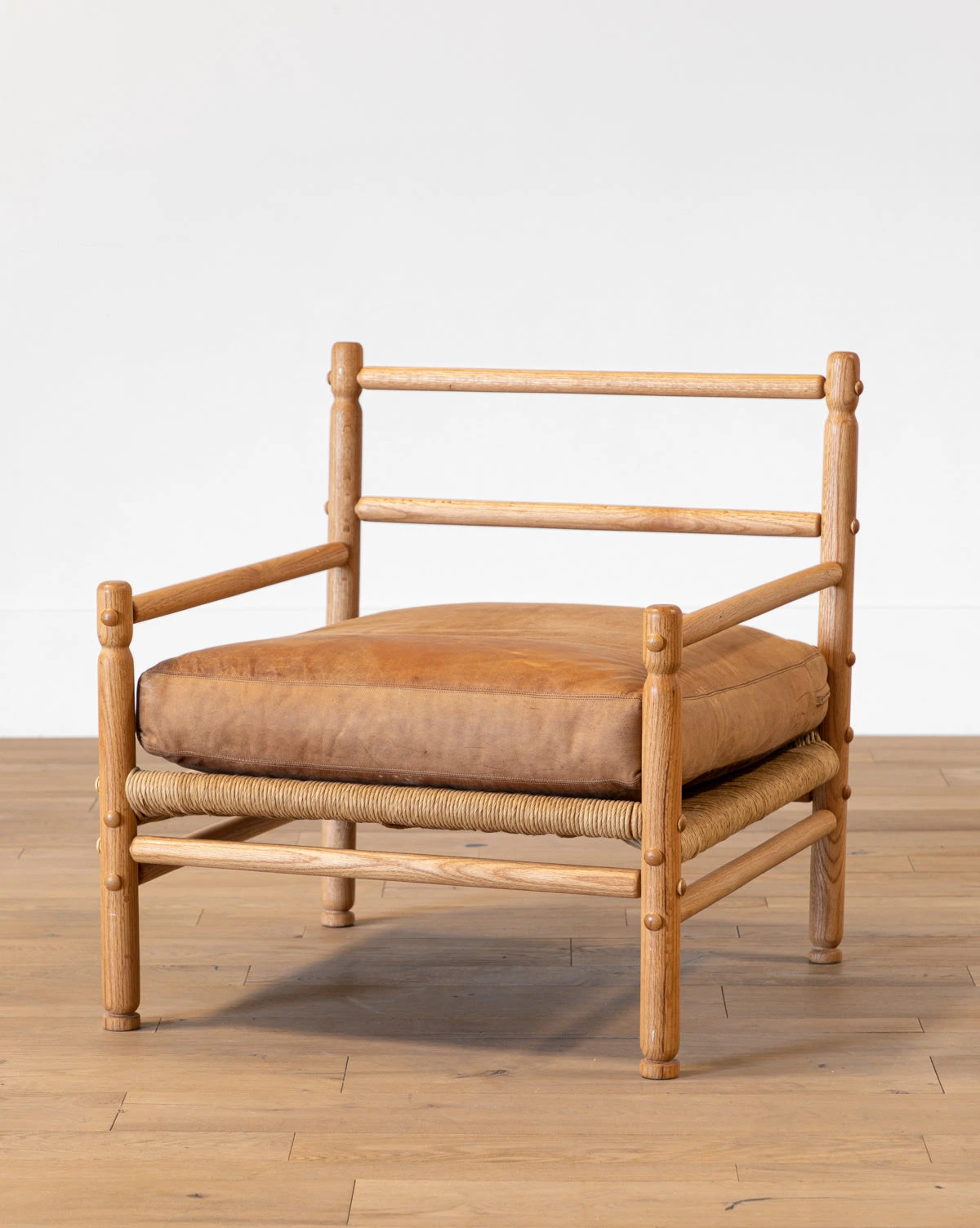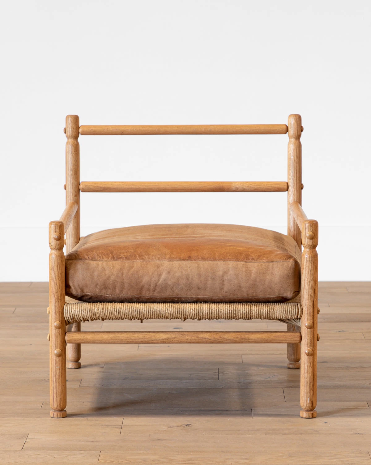 Featuring intricate details, the Vintage Woven Lounge Chair creates a moment of form meets function from its woven seat to its warm wood frame. Fitted with a comfortable cushion, this chair lends an intentional time-worn look and feel to your living room.