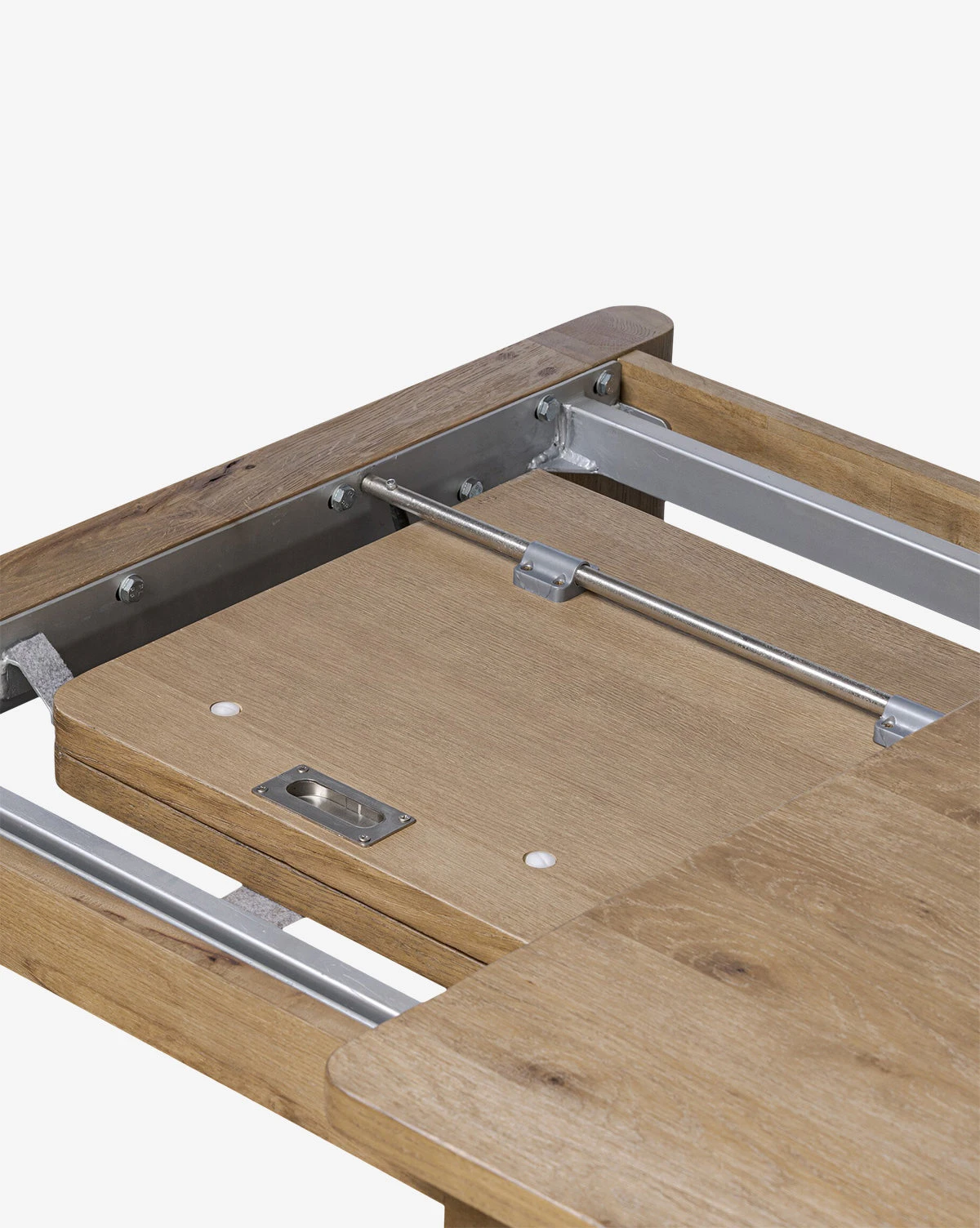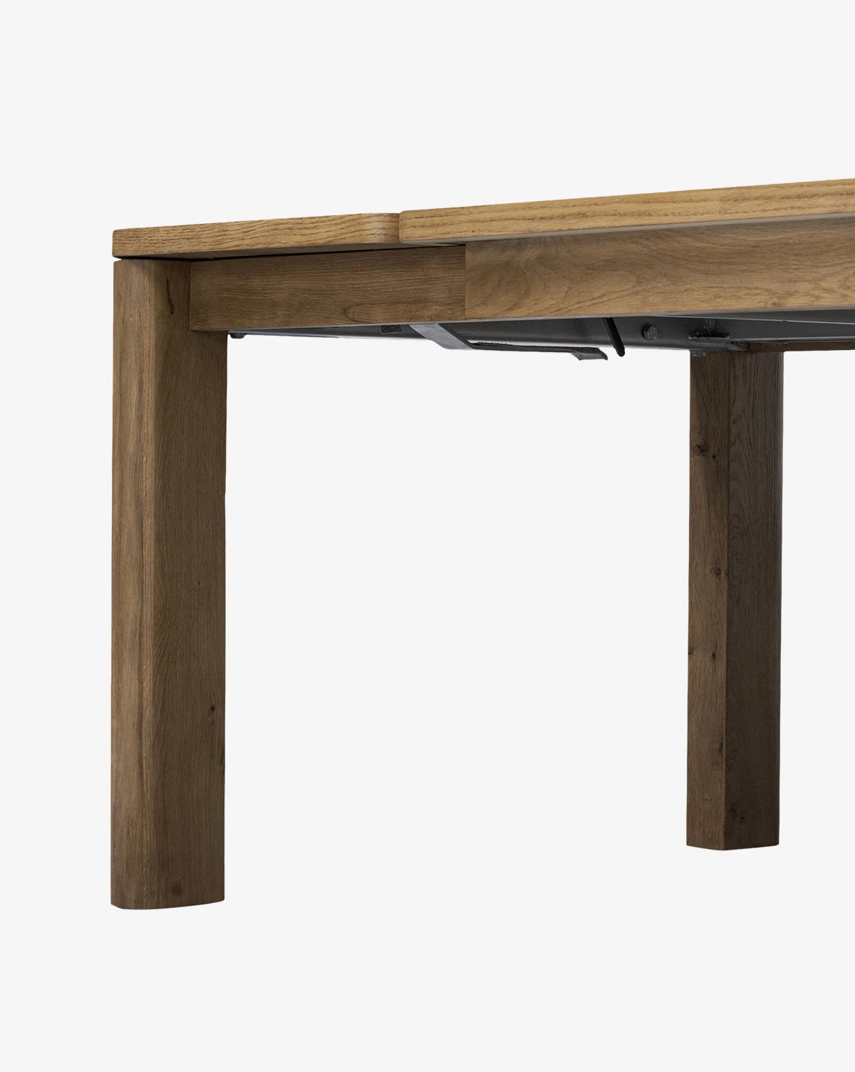 Crafted from oak, the Wagner Extension Dining Table brings unique form and exceptional function to your dining space. The sturdy construction of this piece stands the test of time as it provides enduring beauty and memory after memory. Â