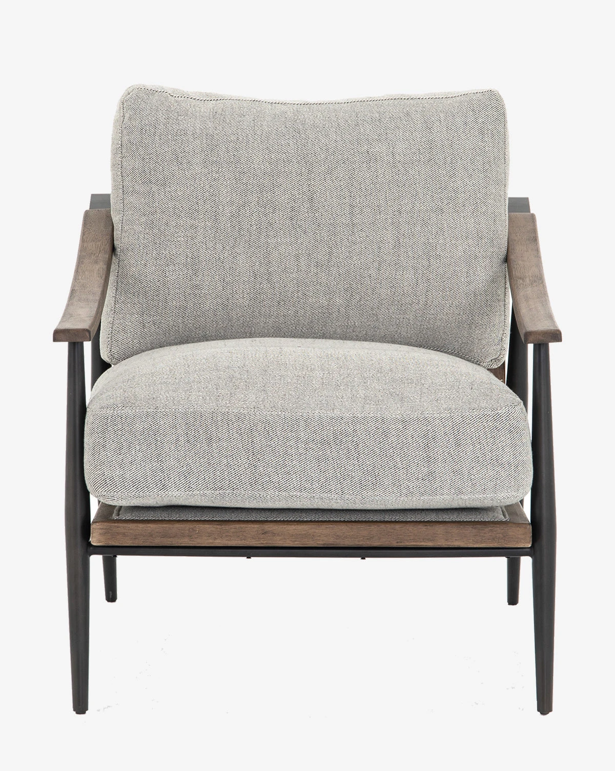 Crafted from a masterful mix of materials, the Wallace Chair is the epitome of comfort meets style. From the sloped wooden arms to the gunmetal finished legs.
